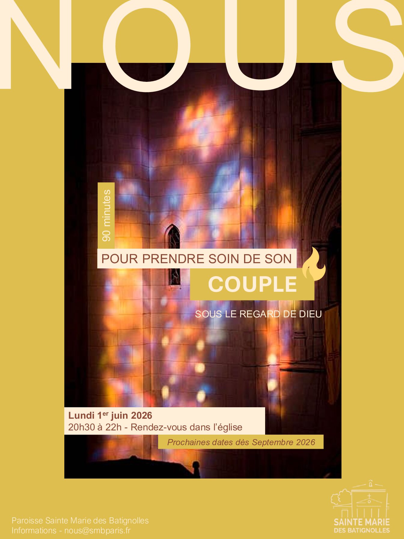 Paroisse catholique Sainte Marie des Batignolles • Diocèse de paris • 77 place du Docteur Félix Lobligeois 75017 Paris • 01 46 27 57 67 • paroisse@smbparis.fr